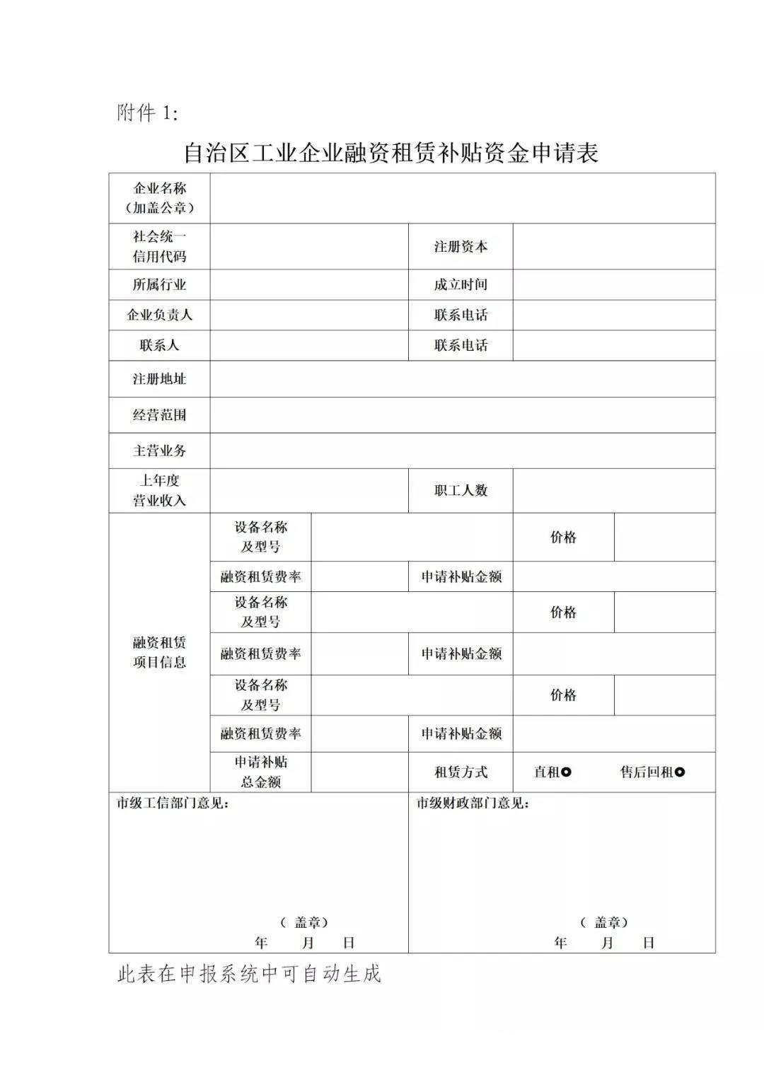 为贯彻落实《自治区人民政府关于降低实体经济企业成本的实施意见》(宁政发〔2017〕1号)及《加强金融服务助力小微企业健康发展若干意见》(宁政办规发〔2018〕8号)有关精神,支持企业通过融资租赁方式加快设备升级改造,盘活资产,降低融资成本,现将2020年度工业企业融资租赁补贴申报有关事项通知如下。