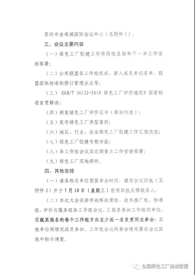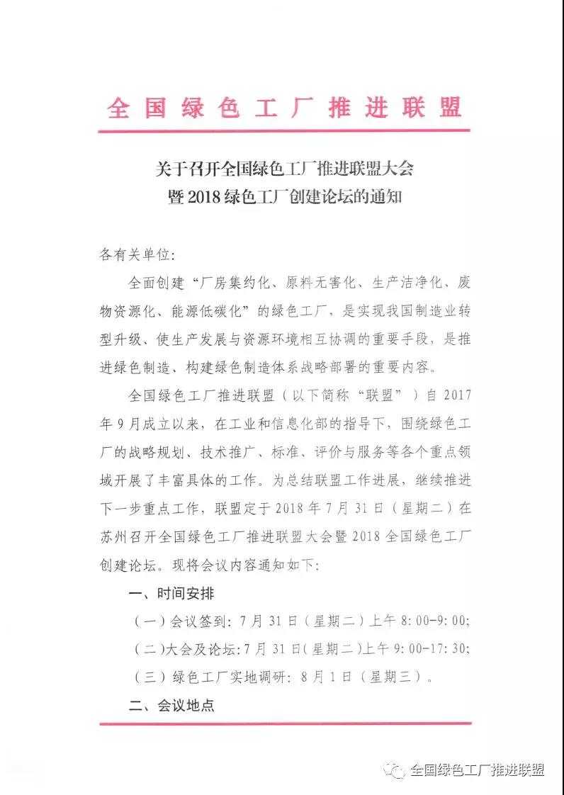 关于召开全国绿色工厂推进联盟大会暨2018绿色工厂创建论坛的通知