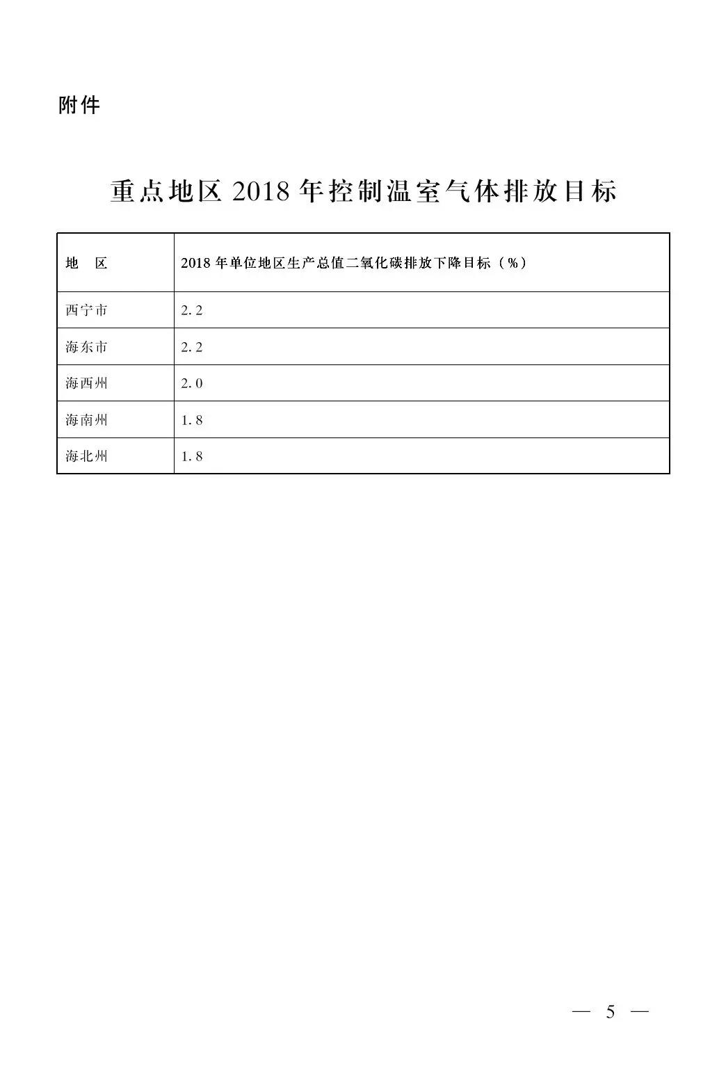2018年全省控制温室气体排放目标为单位GDP二氧化碳排放下降2%,重点地区2018年控制温室气体排放目标详见附件。