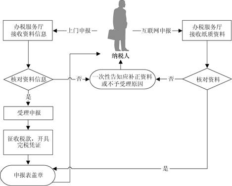 营业税纳税人依照税收法律法规及相关规定确定的申报期限、申报内容,向税务机关申报缴纳营业税。